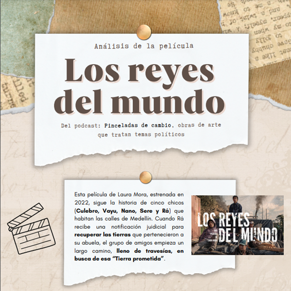 Nuestra primera infografía es de trabajo de Julia Cardoso, quien creó un podcast analizando la película ‘Los Reyes del Mundo’ como parte de la clase Clases Populares y Élites