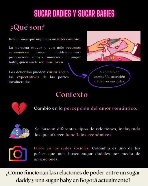Presentamos un fanzine basado en la investigación realizada por Mariana Benavidez, Nicolás Zapata y Erika Hurtado para la clase de Antropología de la Juventud. Su estudio se enfocó en las relaciones entre Sugar Daddies y Sugar Babies.