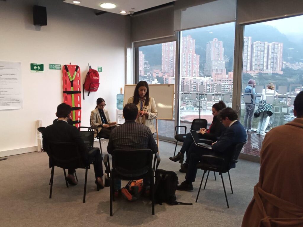 Mónica realizando los talleres para la identificación de buenas prácticas con la JEP en el 2023